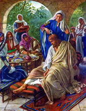 • As Jesus reclined at the table, Mary anointed Jesus’ head with oil, and the Apostle John said she wiped His feet with her hair.